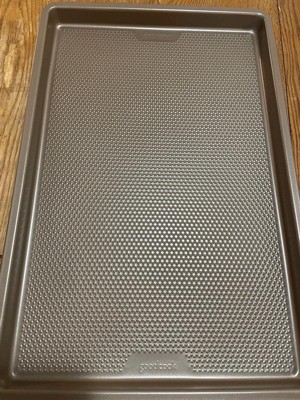 [This review was collected as part of a promotion.] Super impressed with the quality of this baking sheet!! I baked chicken wings with it in the oven and they were cooked perfectly. The baking sheet has ridges that helps with air flow and I can tell it works by how well it cooked the wings. It’s a perfect size for making cookies or really anything you would need a baking sheet for. A great baking sheet!! Highly recommend!
