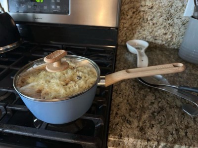 [This review was collected as part of a promotion.] The color scheme is adorable! I’m a big fan of this saucepan, and it’s become an everyday kitchen essential for me. I also enjoy how it contains no harmful PFAs. It’s super easy to clean and dishwasher safe, too!