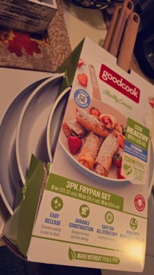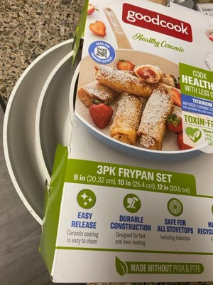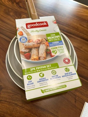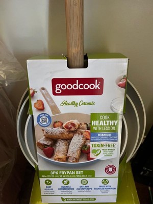 [This review was collected as part of a promotion.] I recently received the GoodCook Healthy Ceramic Titanium-Infused 3-Piece Fry Pan Set, and I’m extremely happy with my decision! These pans are not only stylish but also incredibly functional. The ceramic coating provides a non-stick surface that makes cooking and cleaning a breeze. I love that I can cook with minimal oil or butter and still get perfect results every time. The titanium infusion gives the pans added durability, and they heat up evenly, ensuring my food cooks consistently. Whether I'm frying eggs, sautéing vegetables, or making pancakes, these pans perform beautifully. The handles stay cool to the touch, making them easy to maneuver, and the pans are also oven-safe, which adds even more versatility to my cooking. The set is a great value—three different sizes mean I have the right pan for any cooking task. I’ve been using them daily, and they still look as good as new, with no signs of wear or scratches. Plus, they are dishwasher safe, which makes cleanup super easy. Overall, I highly recommend the GoodCook Healthy Ceramic Titanium-Infused Fry Pan Set for anyone looking for a reliable, non-toxic, and easy-to-use cookware set. It’s a great addition to my kitchen!