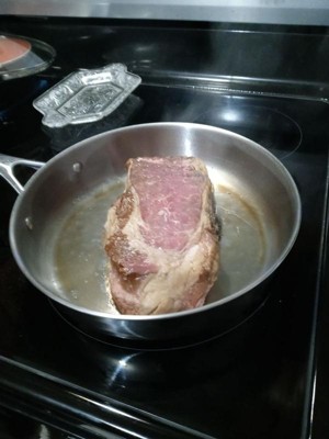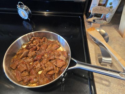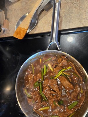 [This review was collected as part of a promotion.] What an amazing pan, I absolutely love it! I've attached a few pictures from dinner tonight and using this site pan, making Mongolian beef (which was also amazing). The pan heated up pretty quickly, as expected and heated evenly. I barely used any olive oil, and my beef strips did not stick (I used medium heat, electric stove). It was so easy to clean up with just a soft sponge, soap and water; zero scrubbing required. A few additional features. This is made with a very heavy, solid stainless steel. The connection where the handle fits onto the pan appears like it's riveted and extremely secure. This is important to me as one of my worst fears (as I cook daily) is a pan full of hot food or liquid breaking and burning me. It is also very deep, so perfect for most kinds of meals. The glass lid has a vent hole, which is perfect for long simmers. It is oven safe to 500°F without the lid and 450° with the lid on. I love this pan and an going to look into purchasing a set... Unless, of course, goodcook wants to gift me a full set. 🤞🤞 But I absolutely, 100%, recommend this pan.