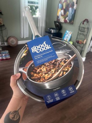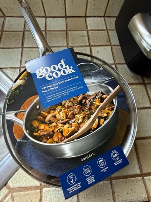 GoodCook 3qt Deep Saute Pan with Lid Stainless Steel Cookware