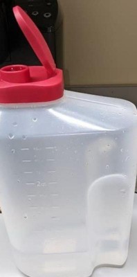 [This review was collected as part of a promotion.] Large, plastic bottle with a leakproof cap. I liked the size and how lightweight it was, used to store cold brew. Could make lemonade too. It’s just hard to clean and then have it dry because of how the cap is to one side.
