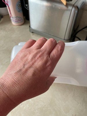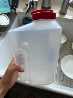 [This review was collected as part of a promotion.] I’m pretty sure if I drop this container it will not crack, chip, or leak! I love the slim design where I can grip it. Large enough to hold batters or juice!