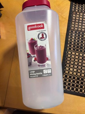 [This review was collected as part of a promotion.] Its 3-quart capacity is suitable for preparing drinks like lemonade or iced tea. The bottle features measurement markings for precise mixing, a rounded grip handle for comfortable pouring, and a snap-lock cap to prevent spills.  Overall, the GoodCook 3-Quart Mixing Bottle offers good value for its price, especially for those seeking a large-capacity mixing solution