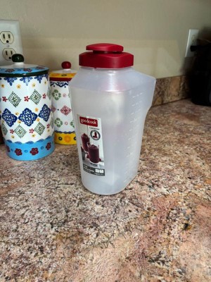 Keep your beverages fresh and cool with the GoodCook Pitcher with Snap Lock Easy-Pour Lid. This covered pitcher features a 3 quart capacity and is great for mixing and storing lemonade, iced tea, juice, mixed drinks, water, and more in the refrigerator. The easy-pour lid features an attached cover that flips open and snaps shut to prevent spills and keep beverages tasting their best, and the square cap provides increased leverage for easy tightening. The built-in molded handle offers additional control while pouring and also allows for a secure grip when shaking the bottle. The pitcher also features embossed measurement markings in quarts and liters along the side of the pitcher for convenience. Made without BPA, the durable plastic construction with frosted clear and red finish is made to last and matches any kitchen decor. This drink pitcher measures 3.8" x 7" x 10.25" total for efficient storage in cabinets on shelves when not in use, and it is dishwasher-safe to make clean up a breeze. For over 30 years, GoodCook has created the tools that have made life in the kitchen easier and more enjoyable. As we’ve grown, we strived to stay on trend and continually incorporate more function and value into our kitchenware products. We take pride in the fact that GoodCook products are being used every day, and that our name is recognized as a helpful resource supplying products, recipes and inspiration for home cooks across America.
