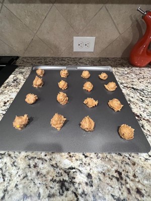Great insulated baking sheets! Visiting my brother’s house and I was disappointed baking cookies here —UNTIL I shopped online at Target and found and ordered these. No too-browned bottoms. Came out looking and tasting just like when I bake at home!
