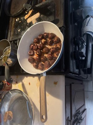 [This review was collected as part of a promotion.] This pan is amazing! It’s heavy duty but so sleek! The heavy bottom means whatever goes into it cooks evenly. It comes clean with ease. It’s great for roast chestnuts and steamed dumplings