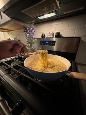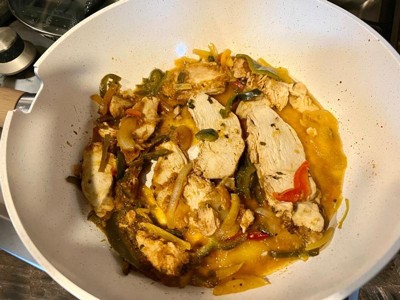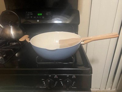 [This review was collected as part of a promotion.] I really like this pan. It’s comparable to a more expensive brand, but one of the main differences being that this one can’t go in the oven (the more expensive brand can). It’s also larger and deep, which is nice when you’re making a one pan meal, or food for a family. I did think that certain things seem to stick to it, but it cleaned super easily. It’s super lightweight which I love, and we will see how long it holds up with the non stick. It comes with some accessories, and I don’t love the wooden spatula (it feels a bit rough and not great quality) but I tend to use silicone or other wooden utensils anyway. I do wish it was nicer because I love that it is able to rest on the pan (see picture). Overall, a really good pan for the price.