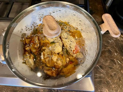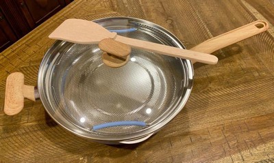 [This review was collected as part of a promotion.] I love how versatile this pan is! I am able to sauté, steam, fry and boil. It comes with a great steamer tray that fits nicely inside the pan. The wooden spoon is very useful and it has a spot on the pan to rest when it’s not in use, but it doesn’t lay down as pictured in the advertisement on the box. It shouldn’t lean into the pan as it does in my picture.