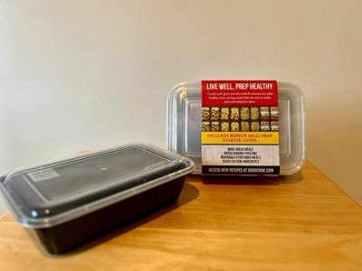 Meal prep is a great way to get food on the table quickly on busy nights, with most of the work done ahead of time. Ingredients can be prepped for quick cooking after work, or whole meals can be prepped and frozen for use later. This set of 30 containers is enough for a month's worth of meals. These containers have just one compartment, so they're great for stews, salads, and other one-dish dinners. There are cup measures embossed on the containers for easy measuring and portion control. For cooks who are new to meal prep, this set includes a complete meal prep starter guide, with 3 healthy recipes developed especially to fit the containers. For easy heating, these are microwave safe, and when dinner is done, they're dishwasher safe for easy cleanup. Use & Care: Wash before first use. Containers can be used in the refrigerator and freezer and top rack dishwasher-safe for easy cleaning. Not intended for cooking.
