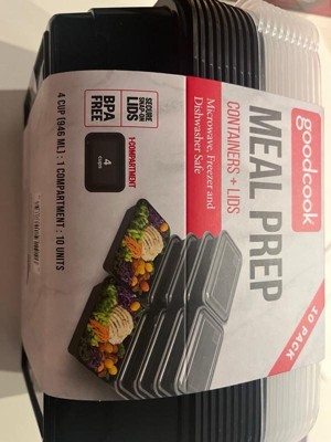 GoodCook Meal Prep 1 Compartment Rectangle Containers + Lids - 4Cups - 60 pcs/30ct - Black