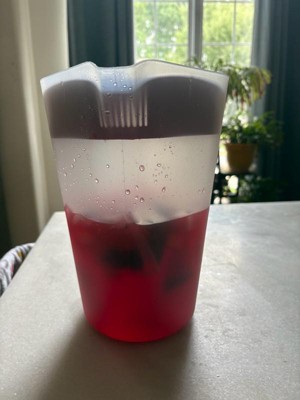 [This review was collected as part of a promotion.] Nice sized pitcher. I like the lid design making it so that there are four options for the spout - from a stopper, to free pour, to an ice catching option. The material is also thick and durable.