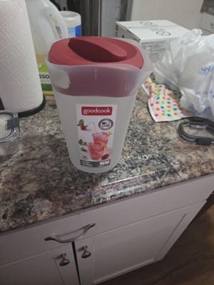 [This review was collected as part of a promotion.] Good Cook gallon pitcher is just the right size to make ice tea. The plastic is sturdy & thick enough to put boiling water with tea bags without losing its shape. I like that it’s dishwasher friendly. The handle is easy to hold and pour . .