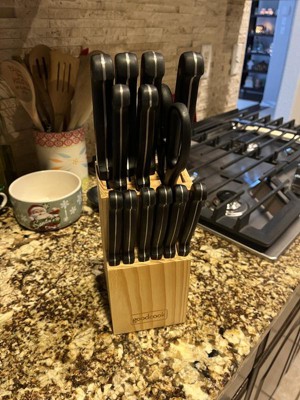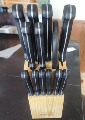 [This review was collected as part of a promotion.] First off, we got a cheaper quality knife set as a gift from our wedding which did okay but went dull faster than we expected. Once we got our hands on this GoodCook set, we have been impressed. We’re ready for steak night whenever we want. The scissors and multiple cutting knives give me plenty of options when I get to BBQ for the family. We’ve been excited and are eager to write another review of how long these last for us, just don’t hold your breath lol because they are great quality!