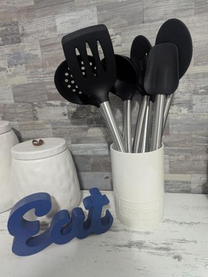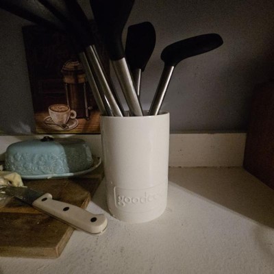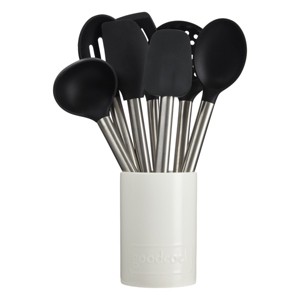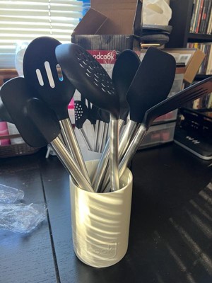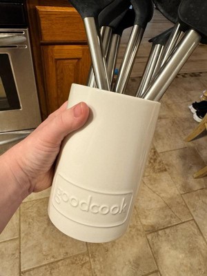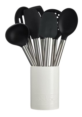 [This review was collected as part of a promotion.] The GoodCook utensil set is a good choice for new cooks looking to outfit their kitchen. The metal handles are durable and easy to clean. I also like that the set comes with a ceramic crock.