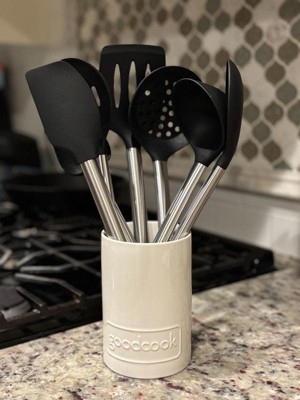 GoodCook Ready 8pc Silicone Tool and Crock Set: Ladle, Spatula, Slotted Turner, Utensil Holder, Dishwasher-Safe