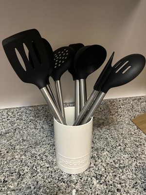 [This review was collected as part of a promotion.] This is such a great and complete set and comes with eight different silicone kitchen tools, and every single one is necessary for every kitchen if you cook frequently, from breakfast to dinner to making soups and using the ladle. It is absolutely perfect. There’s even some pieces in there Ive never had and excited to use. It comes in a ceramic white holder, which goes perfectly with my kitchen its made very well and sturdy and looks like it will hold up through all of my kitchen use. Also, it’s dishwasher safe and heat safe.