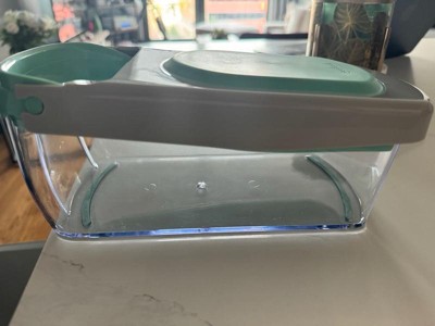 - Non-slip base keeps the container in place while chopping, and the airtight lid comes with an easy-pour opening