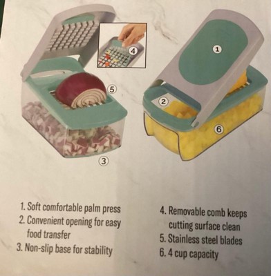 [This review was collected as part of a promotion.] This is great! It comes with a pamphlet with some examples of how to pre cut certain veggies so you get the ideal shape. It was surprisingly easy and didn’t require much force and I was able to dice two zucchini’s in seconds. It also has a comfortable little pad for your palm and a pour spot to dump whatever you cut. Only improvement is I wish the pour area was resealable so I can prep and store. The whole thing was easy to wash as well! I am happy I have this product on hand.