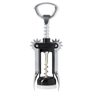 Our GoodCook Ready Winged Corkscrew features a steel-forged cork worm to remove natural and synthetic corks from bottles of wine, olive oil or vinegar. The twist action knob pivots the cast winged handles up and into position to lift the cork out, when handles are pushed down. That same twist-knob is also a built-in bottle opener for sodas, beer and more. The stepped base can fit onto a variety of bottle sizes. and its compact size is great for picnics and takes up little room in your drawers.