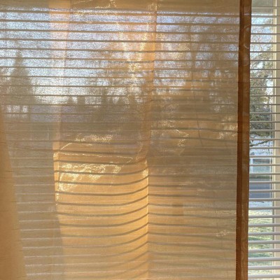 Not Blackout curtains as advertised! They are definitely a sheer fabric and totally see thru. Hung them and saw absolutely no difference. So frustrating as they were ordered in the beginning of December and were supposed to arrive on the 15th of December. They finally arrived on the 28th of December. So not only are they the wrong fabric and falsely advertised, I also had to wait way longer than what had been advertised for when they would arrive.