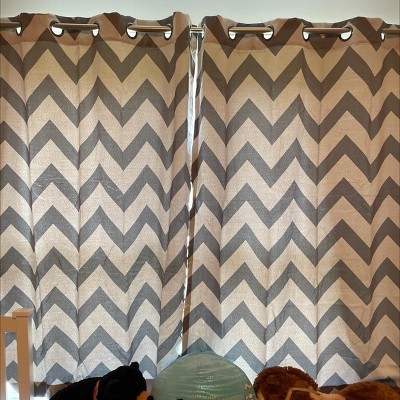The photo doesn’t match the color of the actual item. The photo looks like white in between the gray chevrons but it’s actually light/medium gray with dark gray. This makes the overall appear h darker than what I wanted. My daughter doesn’t really care so they’ll stay in her room, but I’m not super pleased. They work to block lots of light and are a good length to come to the end of the window. They seem well made and I have no complaints about the item itself, it’s just not exactly what I wanted nor what was pictured.