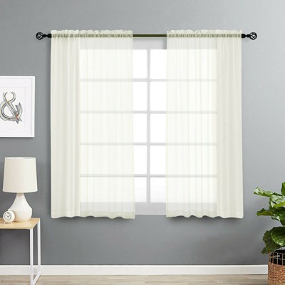 GoodGram Montauk Accents 2 Piece Grommet Top Summery Sheer Voile Window Curtain Panels For Small/Short Windows - 45 in. Long - Ivory