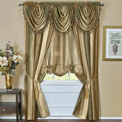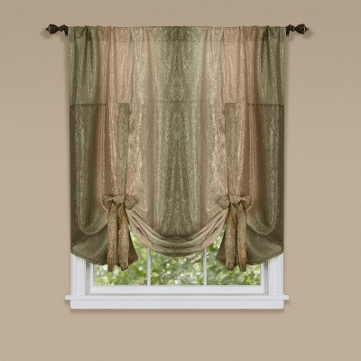 GoodGram Royal Ombre Curshed Semi Sheer 3 Pack Tassled Window Valances - 46 in. W x 42 in. L, Earth