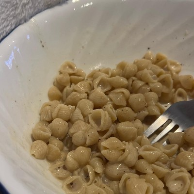 This product offers a unique twist on traditional mac and cheese, combining flavors reminiscent of bacon with a hint of sweetness and spice. While some guests appreciate the creativity and flavor profile, others find it overly peppery or not true to the expected taste. The shell noodle design enhances the creamy texture, making it a delightful option for those seeking a vegetarian alternative. Overall, it presents an interesting culinary experience worth trying.