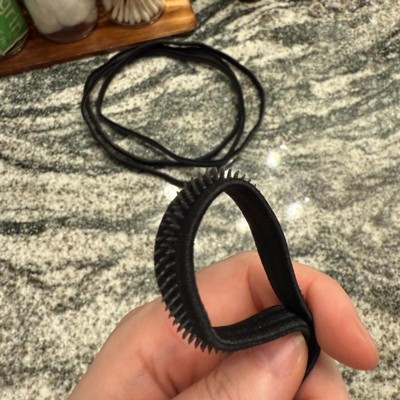 [This review was collected as part of a promotion.] This product came secured in a bubble wrapped package. I decided to try it while I was in the office working. The strap itself is VERY tight for my head and my afro kept rolling the silicone spikes up, so it really didn't have any effect on movement during the day. I gave one to a friend with straight hair and she loved using it to secure her hair at night to keep it out of the way of her CPAP machine. Apparently the silicone spikes kept her hair back very effectively.