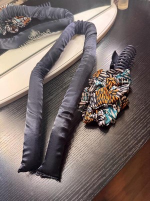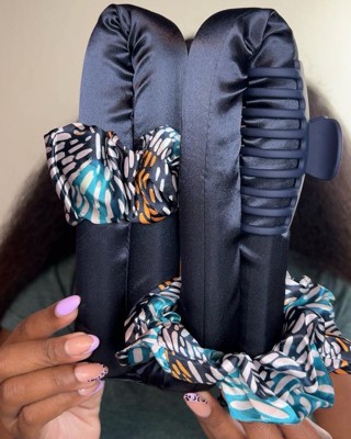[This review was collected as part of a promotion.] Gentle on hair. Satin material for frizz-free hair. Sleek black color. Ideal for medium to long hair4CTGet bouncy, blowout-worthy curls without the heat! Overnight Hair Curling Set. Get voluminous curls without damaging your hair. The satin material helps hair stay frizz-free. HOW TO USE: Just divide hair into two sections and secure curler on top of head with the claw clip. Gently wrap sections around each side before securing the ends with silk scrunchies. Leave on overnight and wake up with soft, effortless curls. For best results, use on damp hair. Add this to your daily hair routine for trendy hairstyles.i love the packaging…