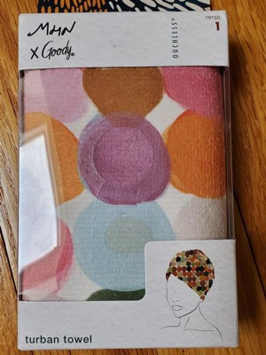 [This review was collected as part of a promotion.] ✨Goody X MHN Turban Towel✨ -Absorbs water fast for frizz-free and damage-free drying. -Button and elastic fastener to secure towel on head -Collab with Morgan Harper Nichols. Morgan is an autistic mixed-media artist, poet, and author from Atlanta, Georgia. -I really like this turban towel. The pattern on it is vibrant and uplifting. The towel is soft, lightweight, and super absorbent. It held all my long thick hair in place after my shower with no issues and helped cut my drying time in half. This towel is the perfect blend of function and style and I’m really glad I received it.