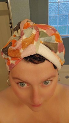 [This review was collected as part of a promotion.] I love the artistic design on this and it’s a little bit of a different feel than the other turbietwist type towels I have! It’s longer which is great because I’m growing out my hair and it’s almost too long for the other ones I have. Love the cute packaging!