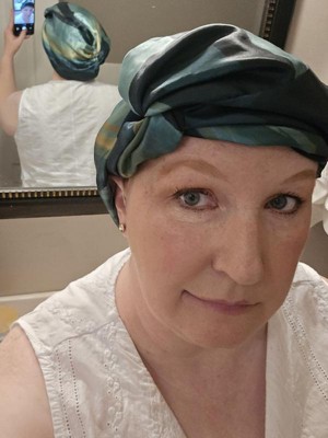 [This review was collected as part of a promotion.] I loved this little turban, great for sleeping to keep your hair out of your face and helps reduce frizz. Overall the colors on it weren’t my favorite but it seems like a really wonderful sleeping bonnet.