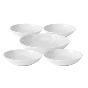 World-renowned chef Gordon Ramsay exemplifies performance and presentation; epitomized by his Maze Dinnerware Collection. This stylish tableware is contemporary and stylish, yet durable enough for everyday use. This 5-Piece Pasta Set is rendered in a subtle White glaze and decorated with embossed concentric circles that attract the eye towards the center of each dish.