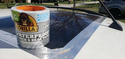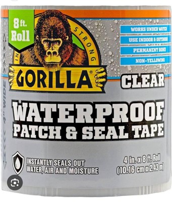 Gorilla Waterproof Patch & Seal Tape Clear instantly seals out water, air and moisture. With an extra thick adhesive layer and UV resistant backing this tape conforms to form a permanent bond. At 4 in. wide use it to patch holes, cracks, gaps and tears Excellent for Home, Auto, Marine, Camping, RVs and more.
