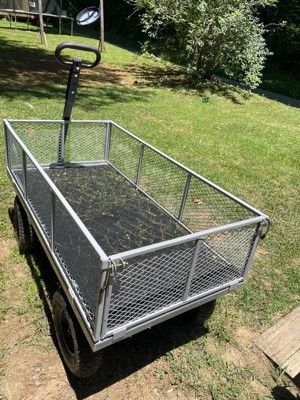 [This review was collected as part of a promotion.] I was so excited to get this utility cart. It did not let me down. It is a great sturdy cart. The wheels are great on it. It’s easy to pull an easy to put together. The instructions are straightforward easy to follow. It has an adjustable handle to make it a little bit longer and you can also attach it to your lawnmower. I like that the sides are removable..