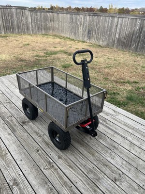 [This review was collected as part of a promotion.] I've only had the wagon for a few weeks but I like it. It did take about hour and half to put it together. The instructions were ok but I think they could have been more clear. This thing is so easy to maneuver around the yard and comes in so handy. It's solid steel, well built, and the large tires work well for my yard work. I like the design on how it is to dump it. I've hauled many large heavy planters to put up for the winter in this. Then recently I’ve been doing yard work and moving fire wood. It’s been very useful and one of the best tools I’ve got to help me around the yard.