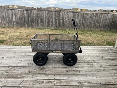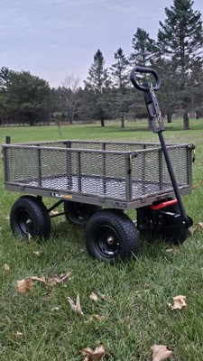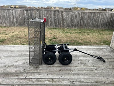 [This review was collected as part of a promotion.] I bought this cart a couple weeks ago and I love it it works great my wife love the dump feature that makes it easy to dump the leaves and sticks into the burn pile and the removable sides make it easy to haul bigger loads across the yard plus my grandson loves riding in it