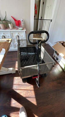 [This review was collected as part of a promotion.] This wagon is great. It’s very heavy duty and sturdy. It’s really nice because you can load it up then use the dump feature to dump your load wherever you want. It was fairly easy to assemble, the instructions were easy to follow. A couple of the hooks on the side gates were bent and I had to bend them back in order to connect the other sides. The black liner that goes in the bottom of the wagon is cheap thin plastic that cracks very easily. Mine came cracked. Other than that the wagon is great and will be super useful during the “mow season”