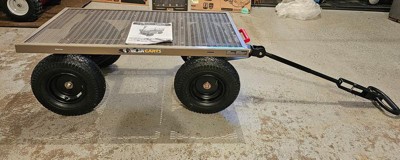 [This review was collected as part of a promotion.] This cart is very well made. It took a little bit of time to assemble. It is very sturdy. I like the oversize tires. It makes it easy to roll around on uneven ground. It works well around the yard for different projects. It can hold up to 1200 pounds so a lot can be hauled in it. I would definitely recommend this cart and I really like it.