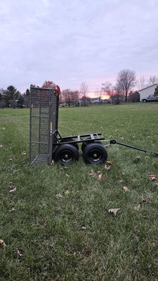[This review was collected as part of a promotion.] So i have a nice size yard and plenty of trees so this came in handy right on time for all the falling leaves to be moved around with ease, the wheels are super cool, it was very simple and easy to put together. I highly recommend this very nice n sturdy and super easy to use. Can even pull it with a simple row hitch connected to ur car or truck!!