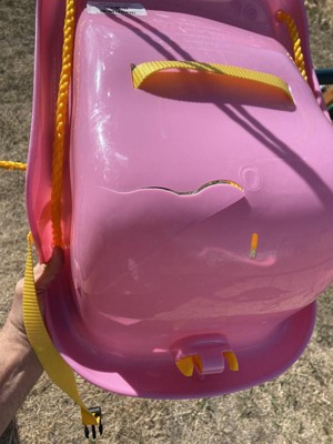 I have a two year old grandchild who weighs 30 lbs. The rope ripped through the plastic on the side making the swing useless. I bought it less than two years ago and it has been removed and kept inside during the winter. Hi