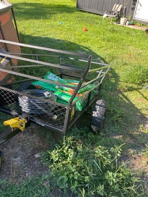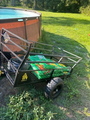 [This review was collected as part of a promotion.] Heavy duty cart. I use to have a trailer that was not gorilla and it didn’t hold up. I do need the attachment so I can carry it but I am excited to use it on my lawnmower. It was easy to assemble but it did have one pice that didn’t line up no big deal.