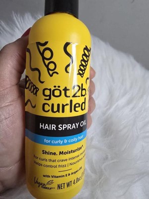 [This review was collected as part of a promotion.] I received this product for free from Influenster and göt2b in exchange for my honest reviews, this hair spray oil is formulated for curly and coily hair. It helps to control frizz, nourishes the scalp and provides intense moisture!
