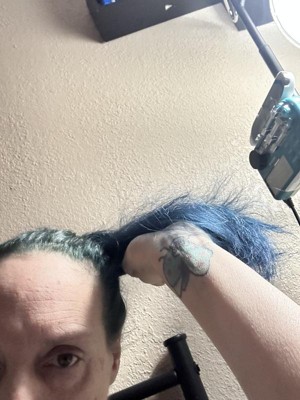 I bought cosmic teal because it looked more green than blue - it’s definitely blue. I have bleached hair (aside from my roots) and it’s blue. Just straight blue. 10/10 would NOT recommend. L’Oréal would never do this to me.