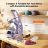 - Smart Auto-Timer with Safety Reminder: Start the countdown automatically by lowering the handle, no need to manually track time. The buzzer signals when your transfer is done, reducing the risk of over-pressing. Perfect for busy crafters or multitaskers running a home-based heat press setup.