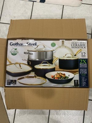 Gotham Steel Navy 12 Pc Pots and Pans Nonstick Set Ceramic Cookware Kitchen Set