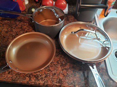 [This review was collected as part of a promotion.] This cookware set is amazing. The copper provides excellent thermal conduction. They heat quickly and are very well crafted. I appreciate the non-stick features of the pans and really love the look and feel of the lids. My only complaint is that the handles (being that they’re all metal and no rubber) get very hot when in use but that may be a preference thing for some people. Overall, a great product.