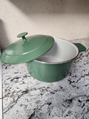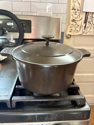 [This review was collected as part of a promotion.] I was thrilled to be able to try this Dutch oven. We used it for baking a loaf of bread over the weekend. I appreciate that it is lightweight, so it's easy to move around the kitchen. This is a welcome addition, and I look forward to making more meals in it. The color is lovely as well.